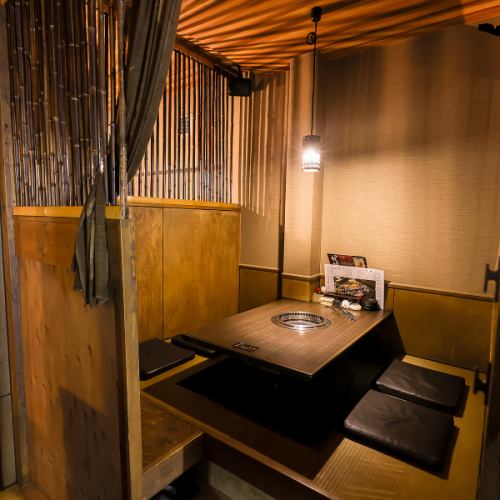 目隠しがあり、落ち着いた雰囲気の半個室。周りを気にせず、気兼ねなくおしゃべりを楽しめる。